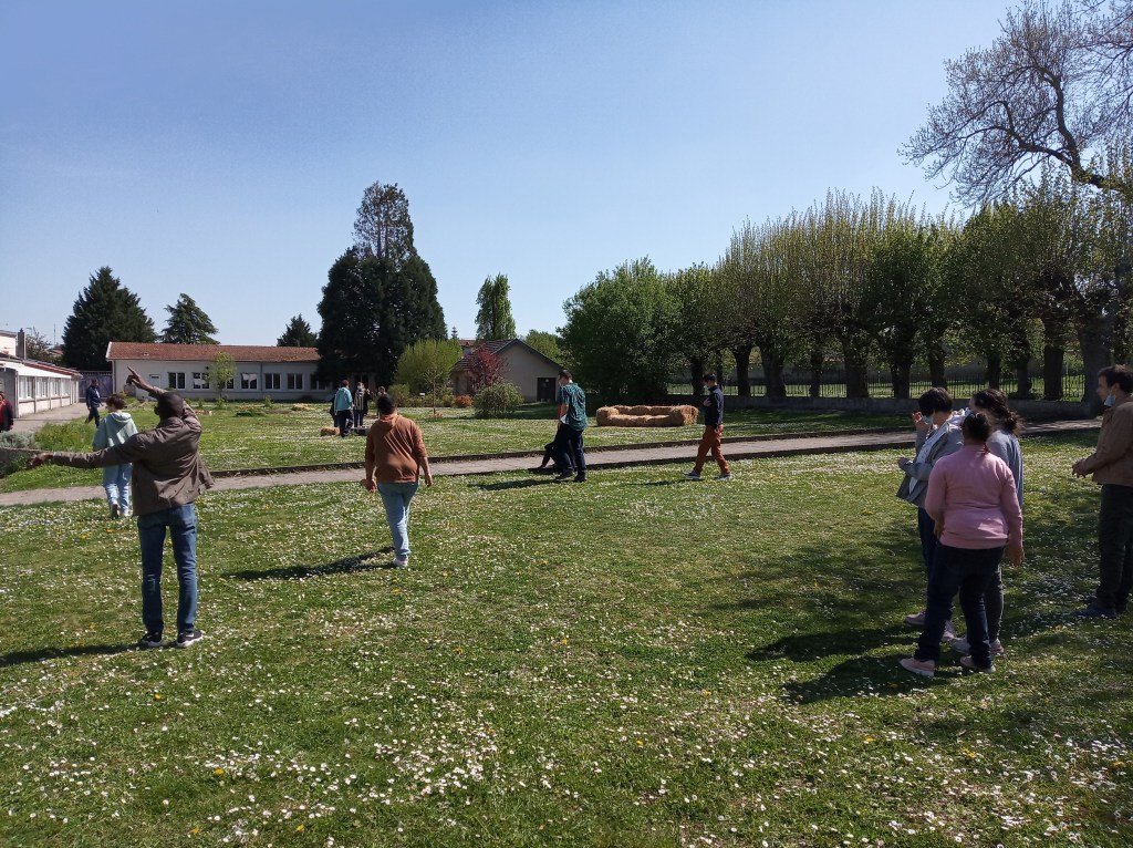 Un groupe d’élèves et Camille ont caché les poules et les lapins dans le parc !