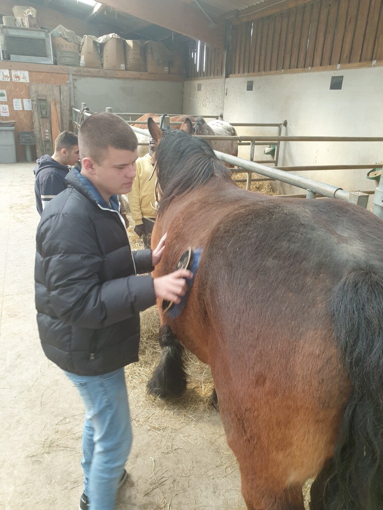 Baïdi, Jonathan Shana et Ambre vont au centre équestre 1 fois par semaine.