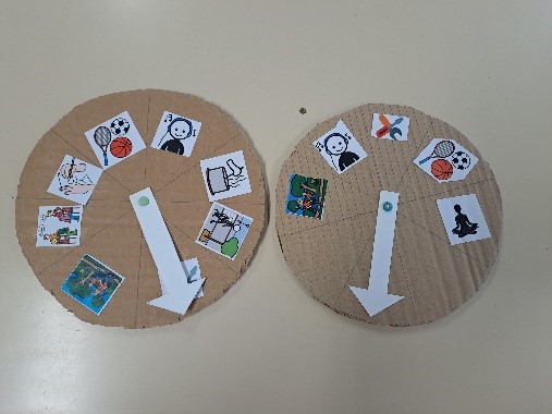 On a fabriqué une roue avec des activités pour remplacer les écrans.